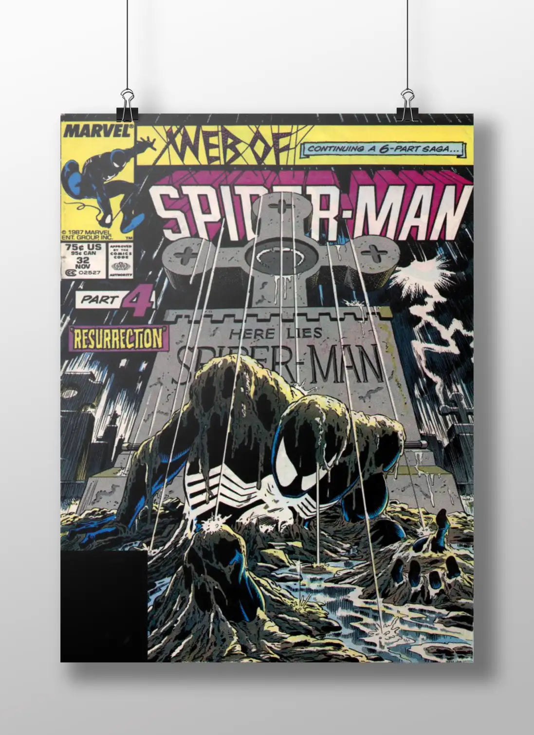 Explore Web of Spider-Man #32 (1987), Part 4 of the iconic “Resurrection” saga. Featuring Spider-Man in his black suit, this dark and legendary Marvel comic is a must-read for collectors and fans of classic superhero storytelling.